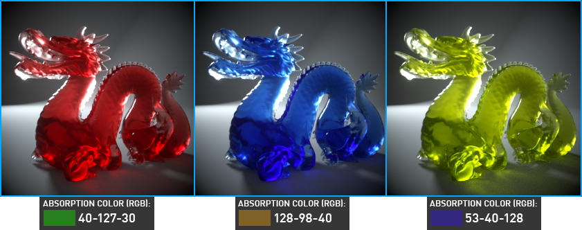 可以使用 RGB 值指定吸收颜色。默认情况下,Absorption