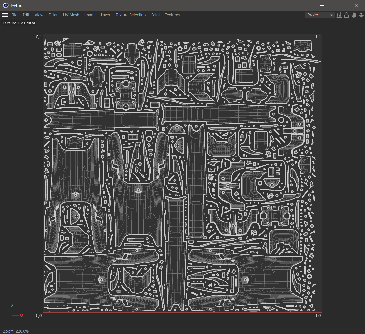 准备您的灯光和纹理。Baking Camera 需要正确结构的 UV 贴图,具有不重叠的岛屿,如下所示。