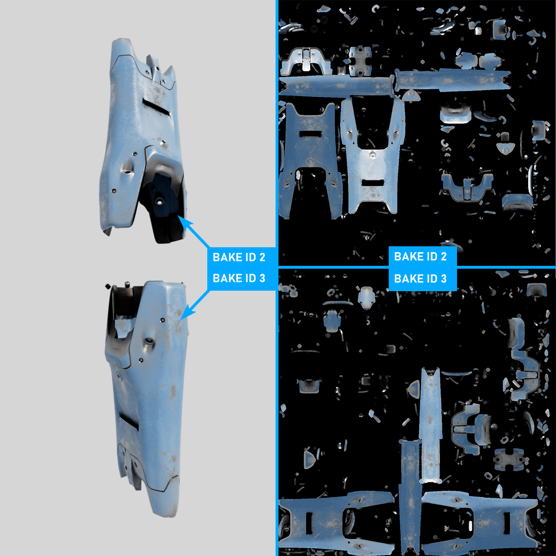 select each object tag and set up bake ids as shown