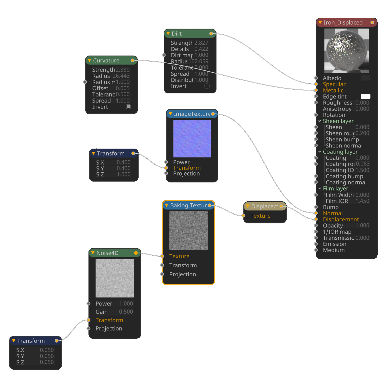 Baking Texture 节点将任何程序纹理转换为图像纹理,具有可调设置,允许在通常不是选项的地方使用程序纹理(例如位移)。