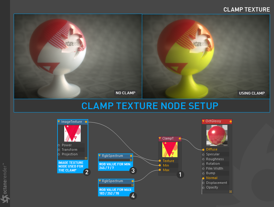 钳制纹理节点提供最小值和最大值来"钳制"纹理贴图的值。