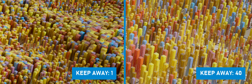 保持距离参数用于确定每个克隆之间的填充量。在具有大量克隆的情况下,较大的保持距离值可能导致不稳定。