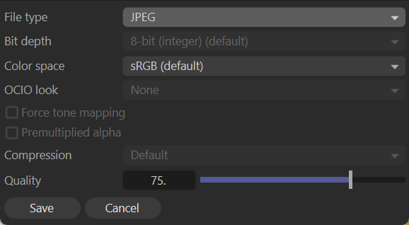 此命令将通过保存对话框保存图像。有四种不同的格式,以及此对话框的四种不同配置。每个对话框都有以下选项: