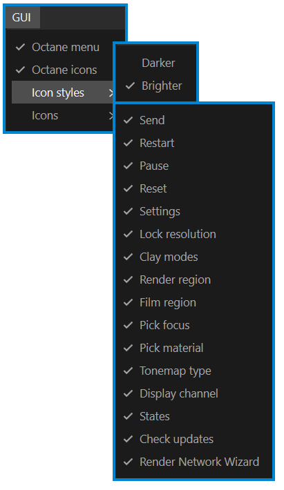 Octane 菜单 — 此选项控制实时查看器中 Octane 菜单的显示(默认为开启)。