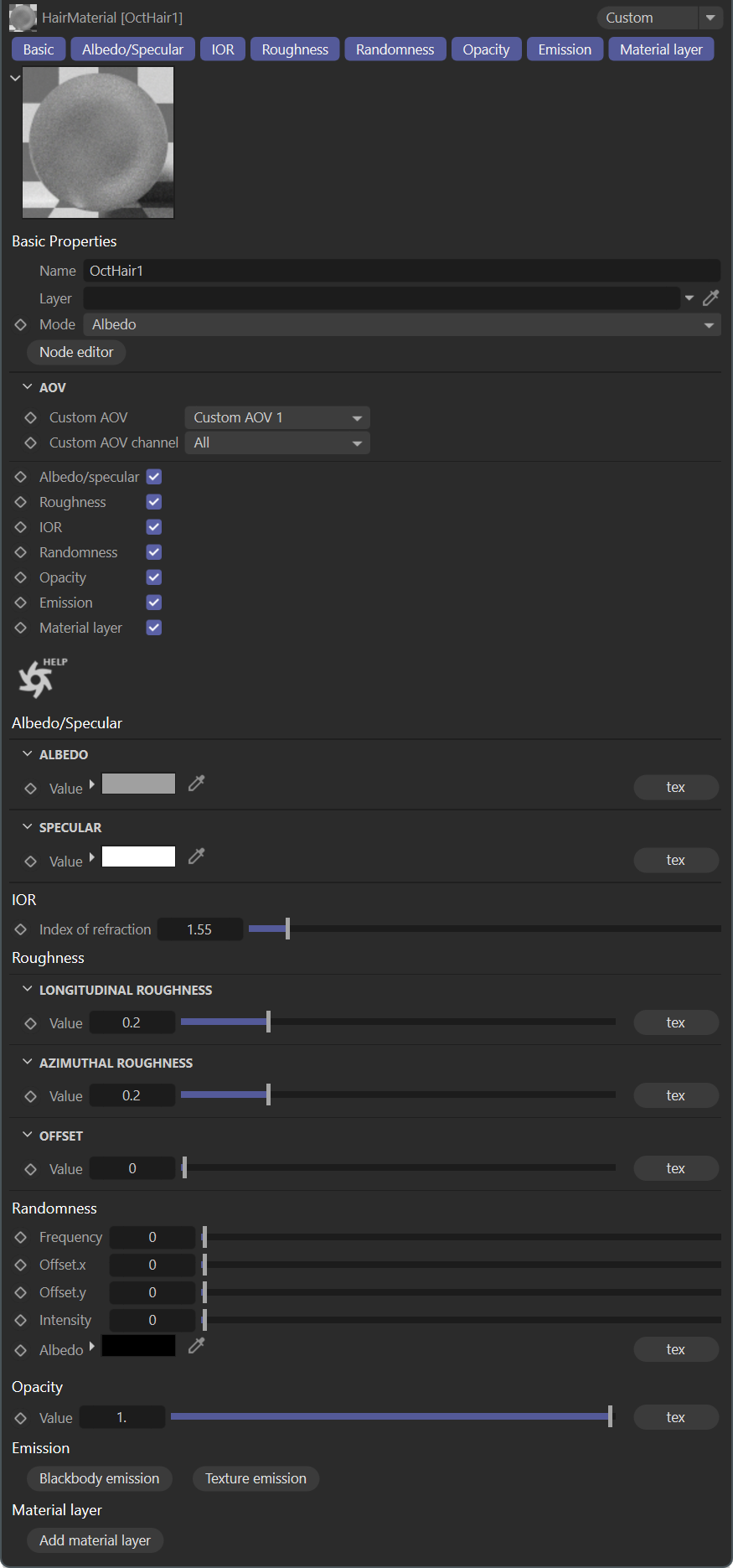 反照率仅在反照率+镜面模式中使用,并直接定义头发丝的基础颜色(所有非镜面反射的内容)。