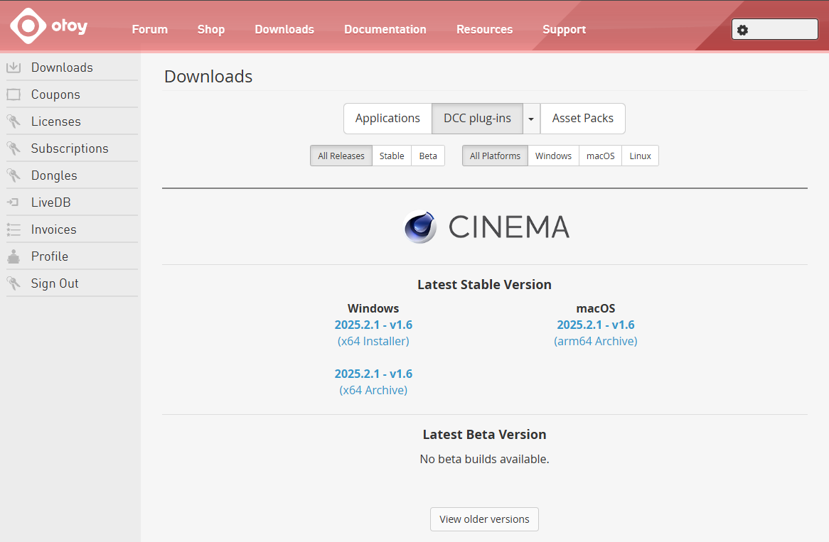 步骤 2: 从这里,为您操作系统下载最新的 OctaneRender for Cinema 4D 安装程序(见下面的图像)。最新版本的安装程序也可在 这里 获得。
