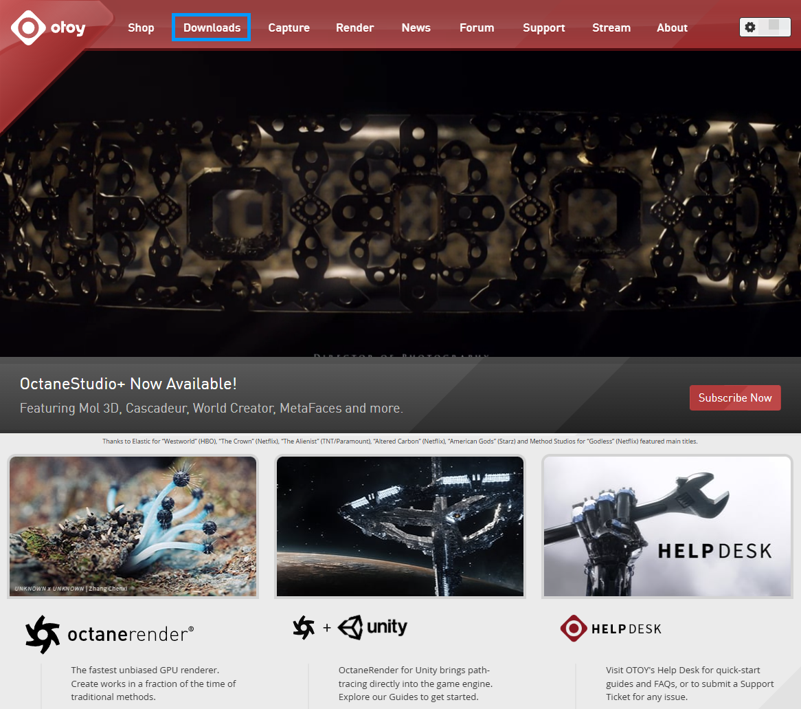 步骤 1: 登录到您的 Otoy 帐户并导航到"下载"部分。