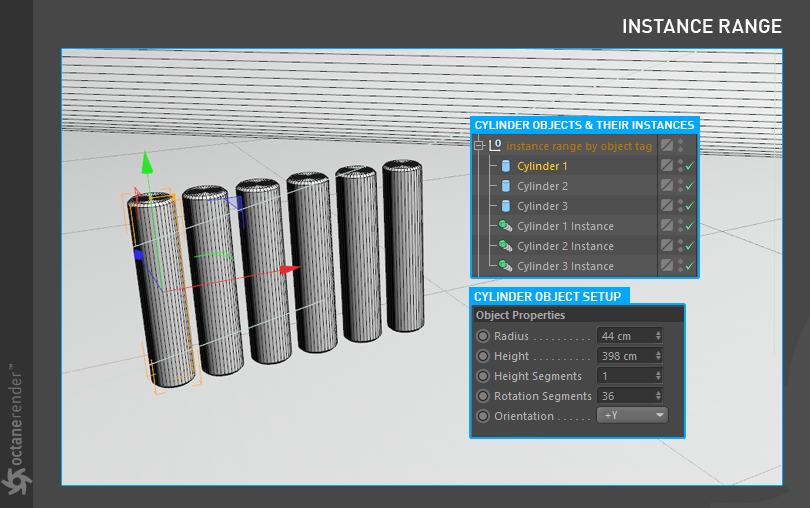 由 Octane 对象标签设置的实例范围
