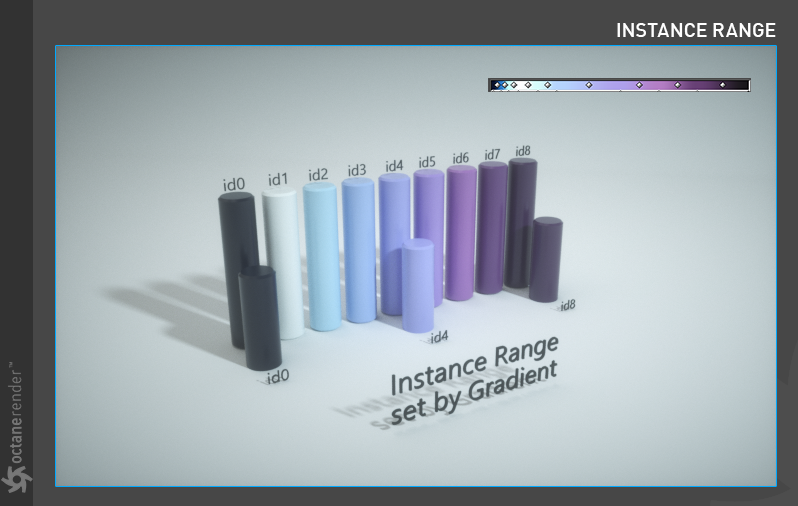 实例范围纹理用于保存范围为 0 – 最大 ID 的灰度颜色,并准备将此范围映射到几何实例 ID。