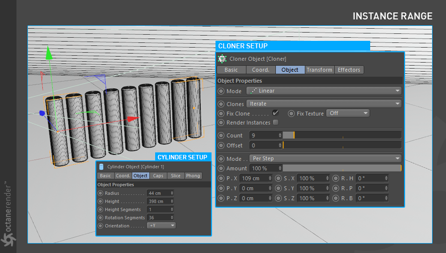 在此示例中,我们将描述如何从 Octane 对象标签创建实例范围。
