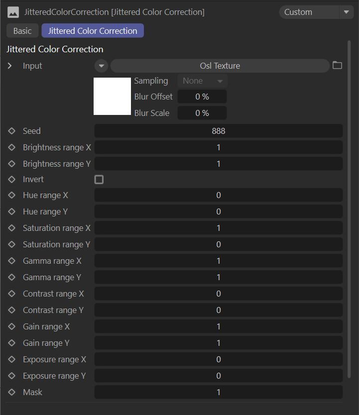 抖动颜色校正 节点根据种子值随机化各种图像调整参数。您可以单独调整各种参数,和/或调整种子参数。