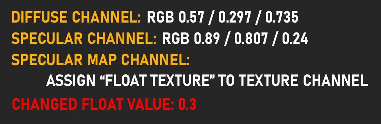 镜面贴图参数确定材质将显示多少金属性,可用于将漫反射和镜面的 RGB 和纹理值混合到金属材质中。有多种使用镜面贴图的方法: