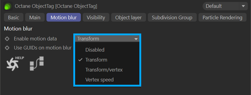octane object tag — motion data selection