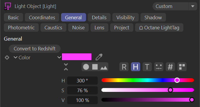 此选项将使用 Cinema 4D 灯光选项的"通用"标签中的灯光颜色。