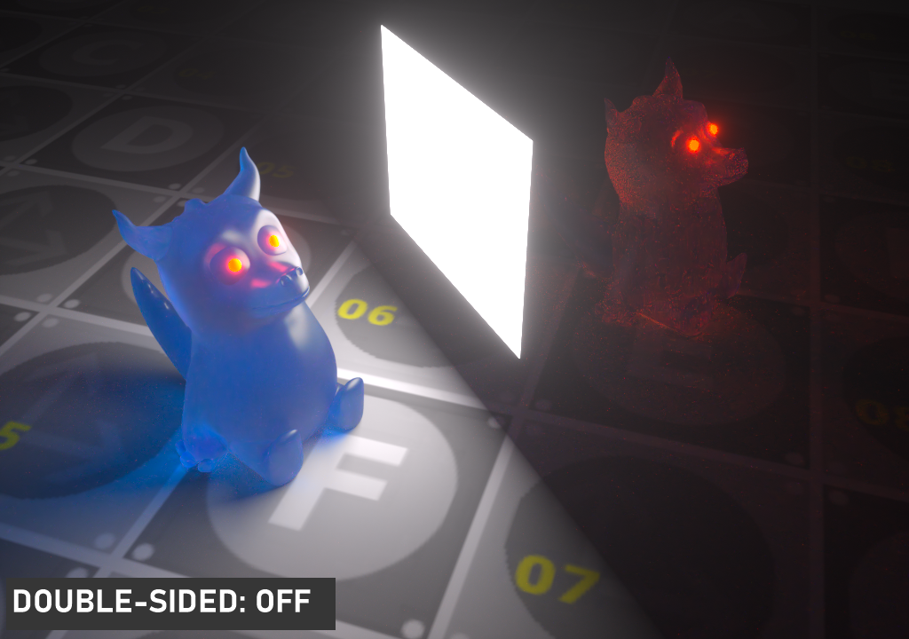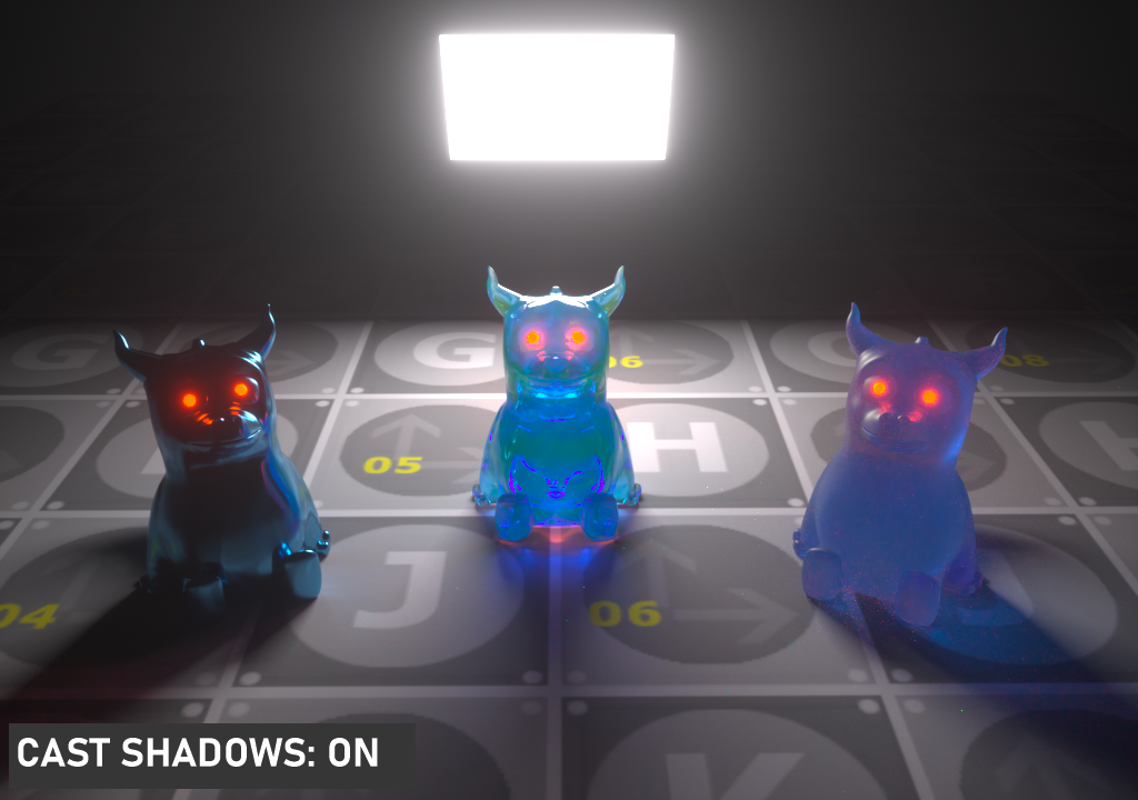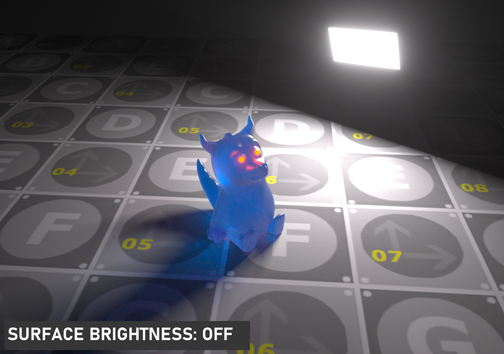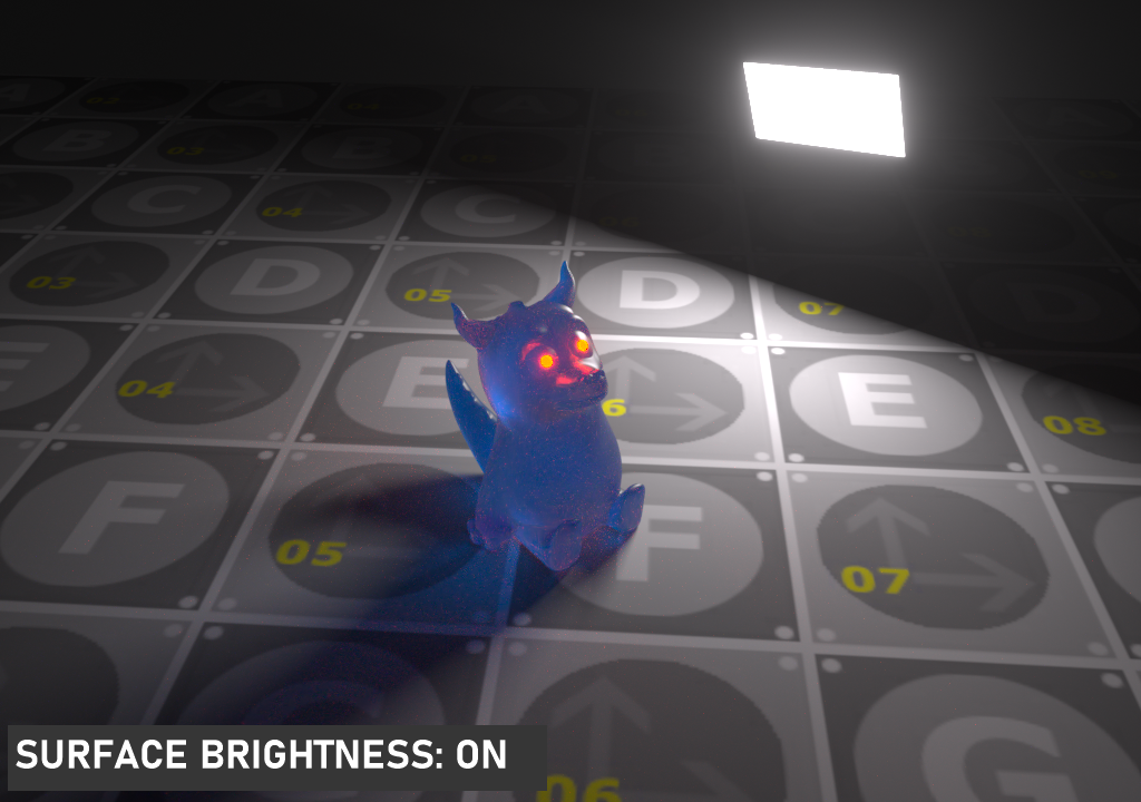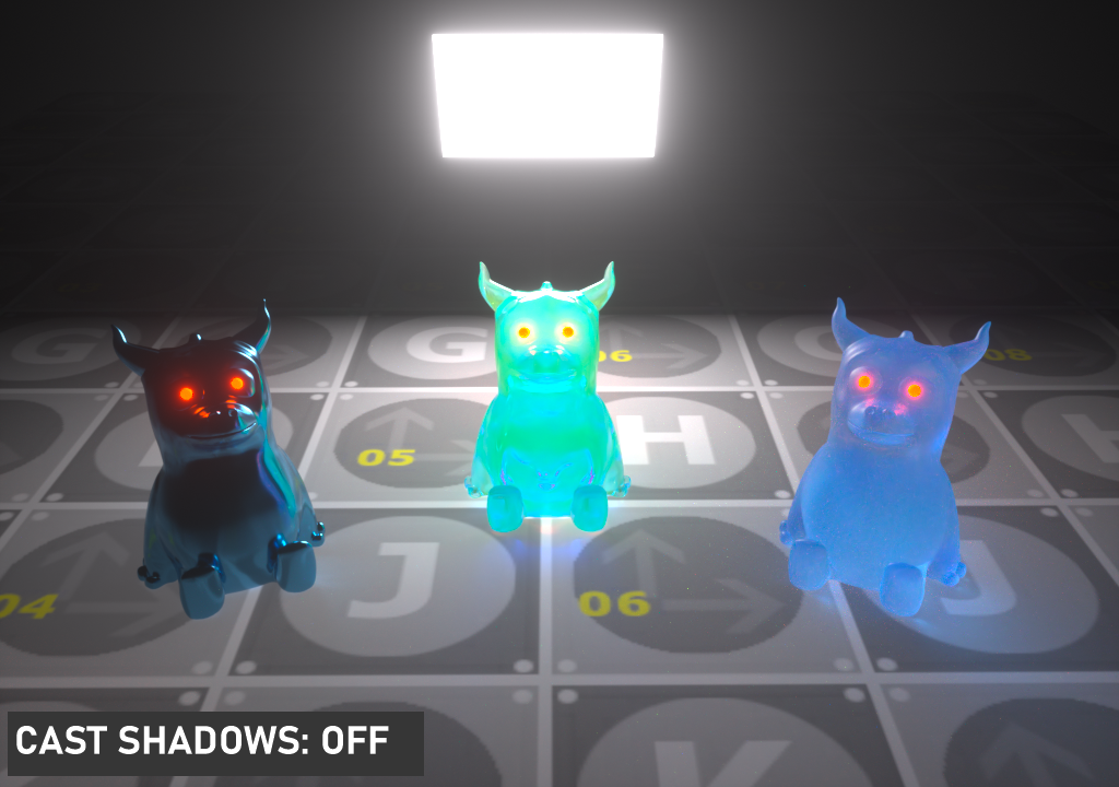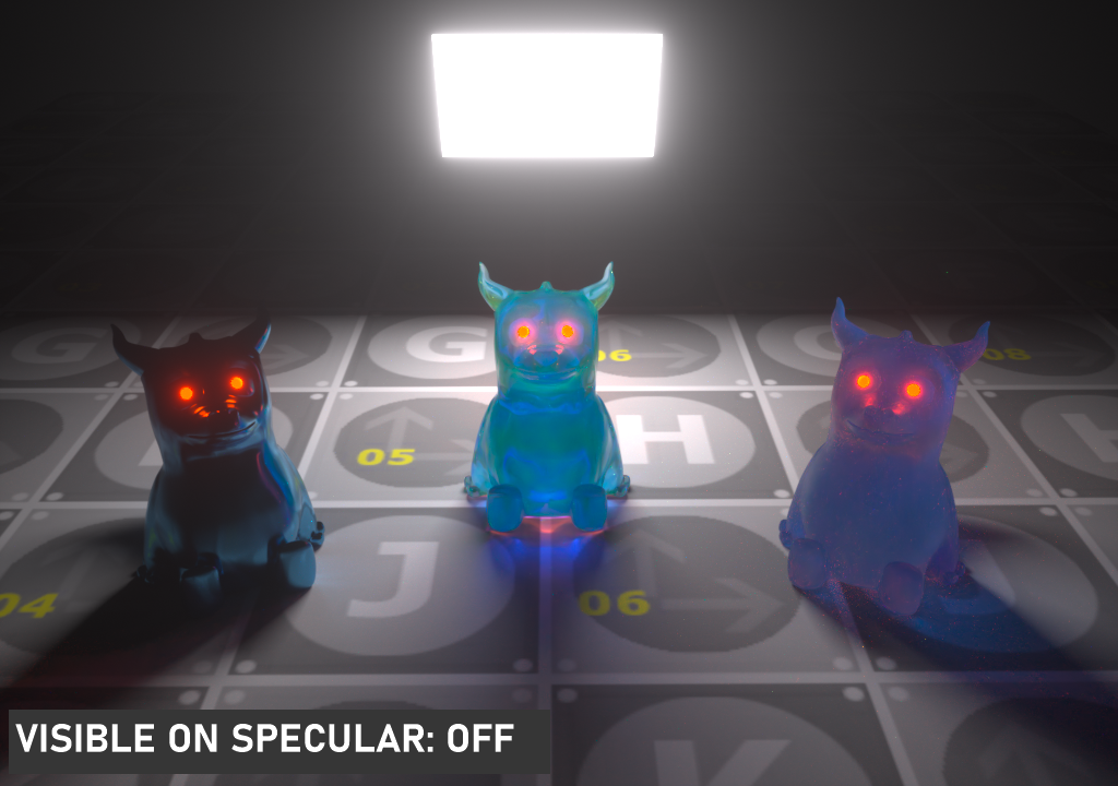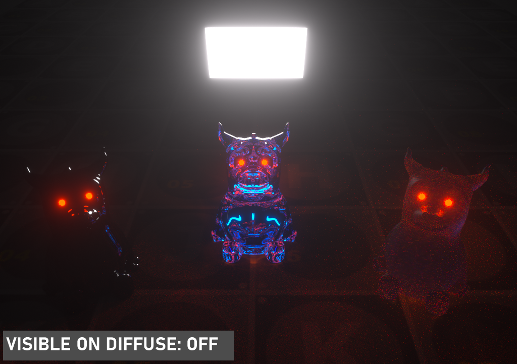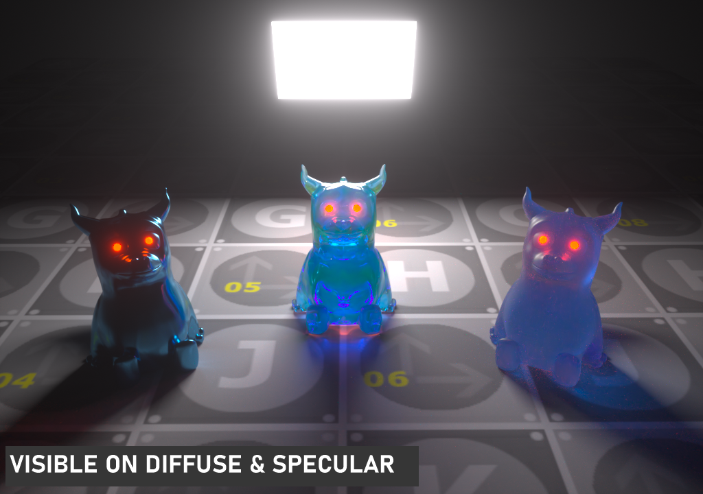此选项使光源在漫反射表面上可见(默认为开启),启用或禁用在漫反射对象上投射照明或阴影的光源。禁用此选项将禁用发光,即,它不会在漫反射反射中可见,但仍会在镜面反射中完全可见。它也将从直接光计算中排除。