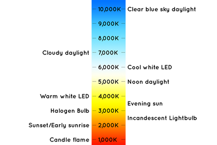以开尔文度数设置灯光的发光颜色,通常用于灯光描述。下图显示了映射到开尔文刻度的可见光谱: