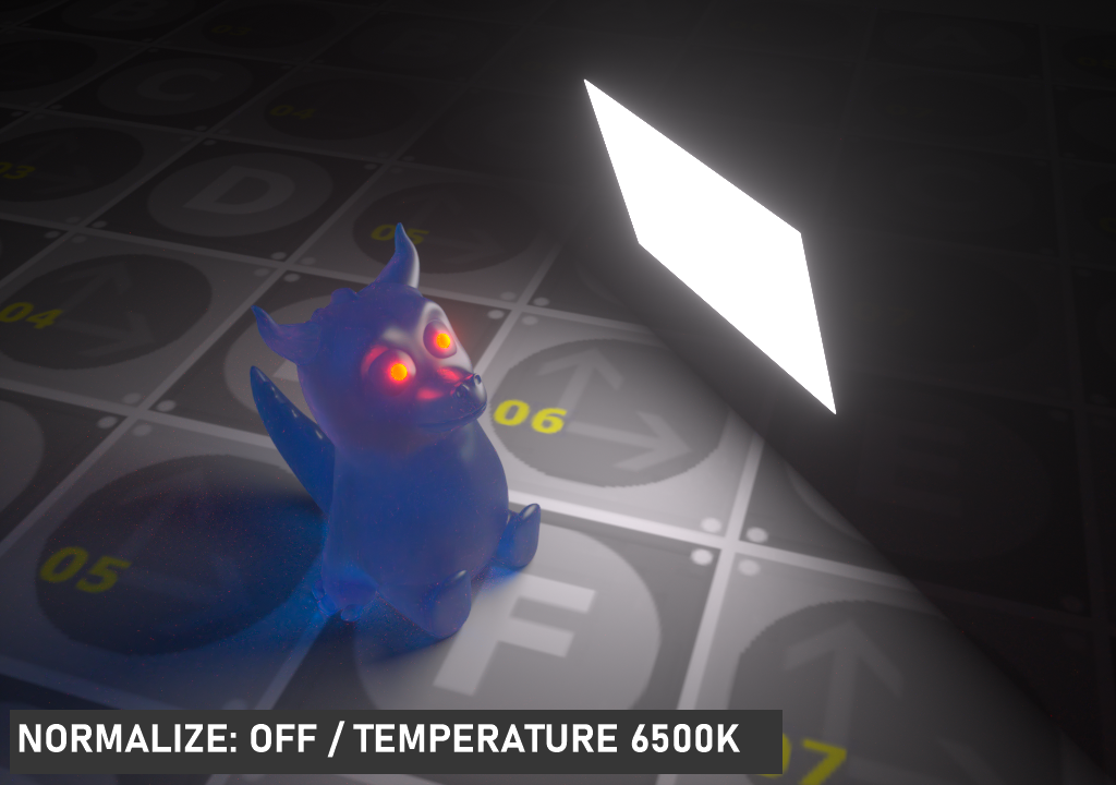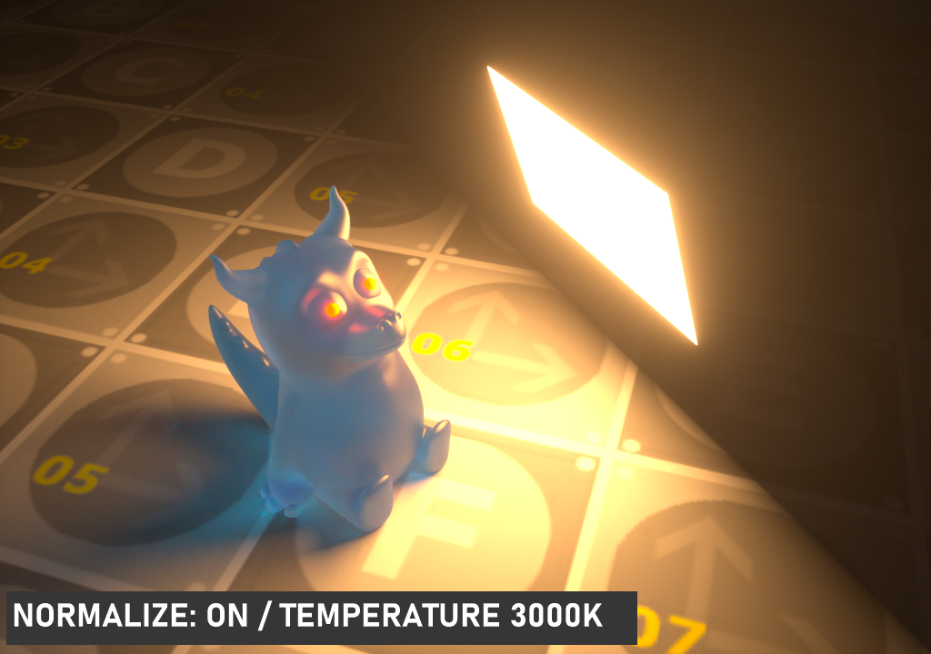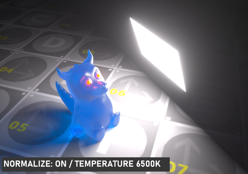 标准化将在发光温度值变化时保持亮度值恒定。当它被禁用时,亮度值将随着温度的变化而变化。根据这一点,在可见光谱的低温部分(橙色、红色),灯光亮度会降低,在较高点(白色、蓝色),灯光亮度会增加。默认为 启用。