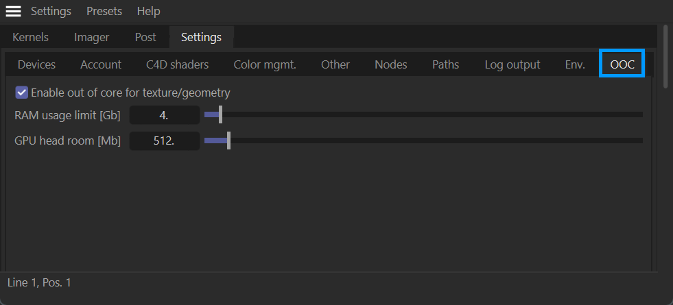 核心外内存功能使 OctaneRender® 能够在场景资源不再适合可用 VRAM 时使用计算机的主系统内存(RAM)。渲染场景的数据需要在渲染时发送到 GPU,因此预计渲染速度会有一些折衷,这可能是显著的。Octane 使用的任何核心外数据所使用的 RAM 将不可用于可能同时运行的其他应用程序。核心外数据必须存储在不可交换的内存中,这是有限的。当主机内存被核心外数据用完时,系统无法为其他进程腾出空间。由于核心外内存在 GPU 之间共享,在使用核心外功能时无法打开或关闭设备。如果部署了 OctaneRender 网络渲染功能,这对渲染节点也适用。