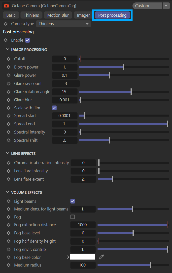 Octane 相机标签 — 后期处理选项卡