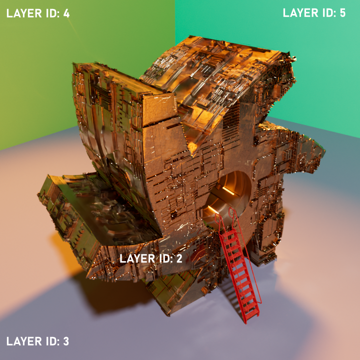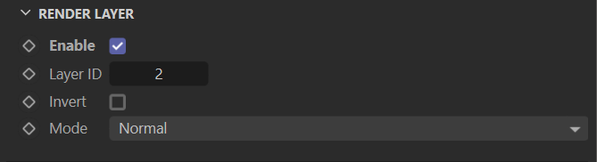 启用(Enable) 开关激活;当启用时,主渲染(Beauty)的输出将由渲染层 ID 决定——场景中的其他所有组件都会从主渲染中被排除。最终输出结果还会受到