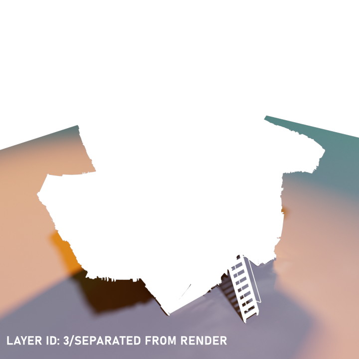 用于捕获活动层对象在其他几何体上投射的彩色阴影。只有启用了伪阴影选项的镜面反射材质才能产生彩色阴影。该通道不包含 Alpha 通道,应使用“正片叠底(Multiply)”混合模式进行合成。