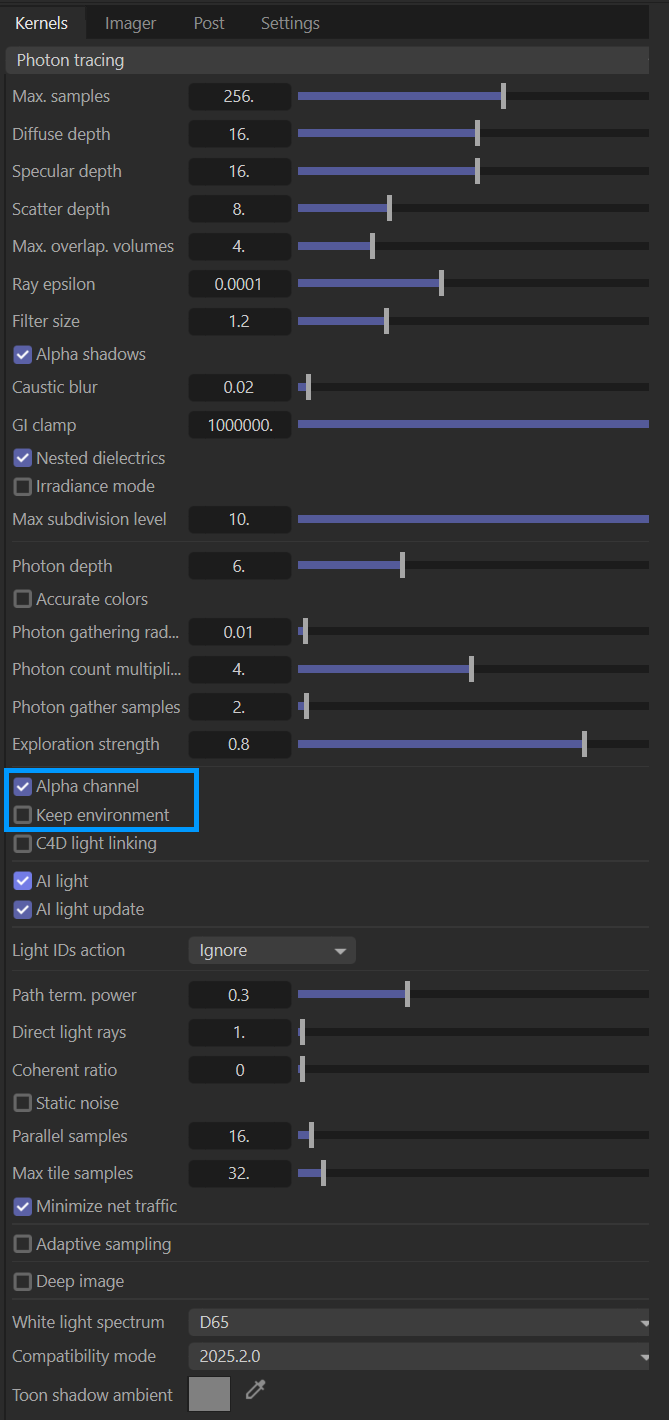 在 渲染核心(Render Kernel) 窗口中,启用 [Alpha 通道](javascript:void(0);.md)[