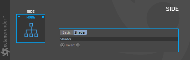 面向(Side)节点会根据多边形对象法线方向分配黑色或白色数值。这对于将不同的纹理或材质分配给多边形对象的不同侧面非常有用。反转(Invert)选项可用于翻转法线方向。