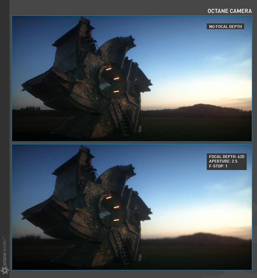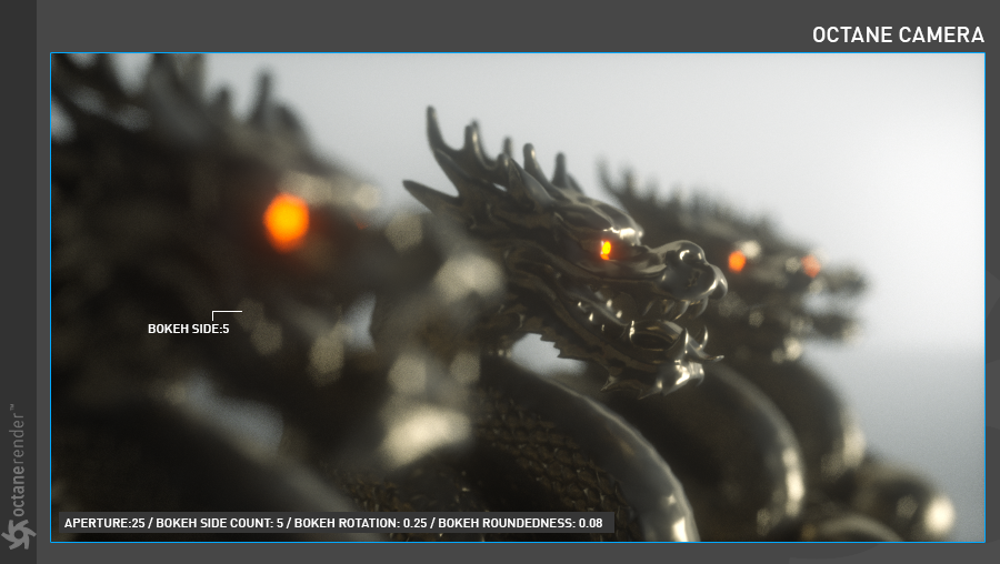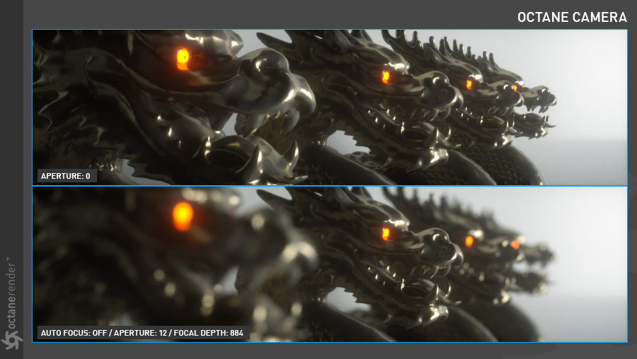 OctaneRender® 中的薄透镜相机是大多数渲染场景中最常用的相机类型。