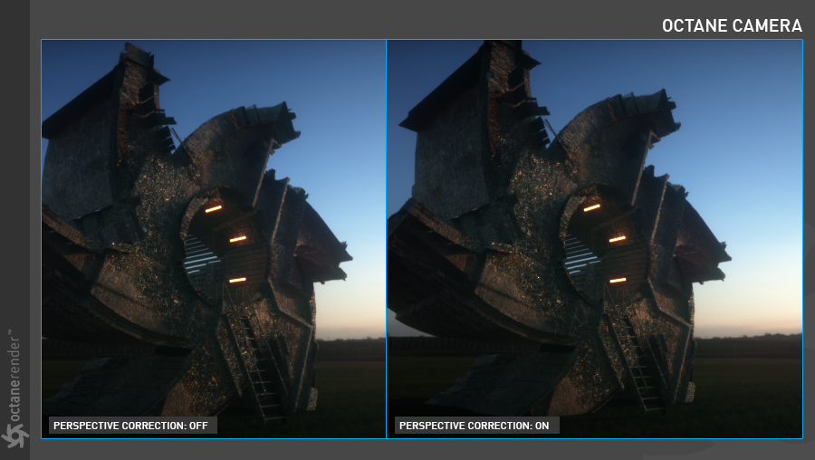 当 Up 向量为垂直方向时,启用该选项可保持垂直线条平行。这在建筑渲染中非常有用,当你希望以接近人眼高度渲染高层建筑,同时保持垂直线条不发生倾斜。